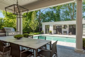 Charming pool house with bathroom, fireplace, lounge & bar/kitchenette. This property showcases talents of top Toronto landscape & interior designers. Elegant dining & living rooms with floor-to-ceiling windows & perfect room proportions.