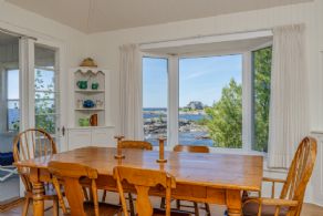 The charming 1600 sq. ft. cottage is designed to make the most of the stunning scenery. With 2 oversized bedrooms and 2 bathrooms, the cottage features a bright white interior, soaring ceilings, a classic stone fireplace, and tons of natural light that blurs the lines between indoors and out. The living room, perfectly positioned for panoramic views, offers front-row seats to breathtaking sunsets over the bay.