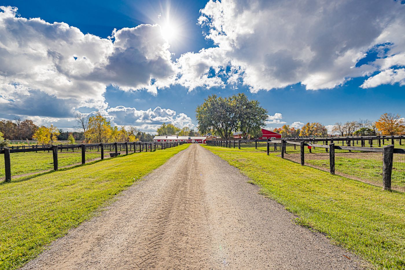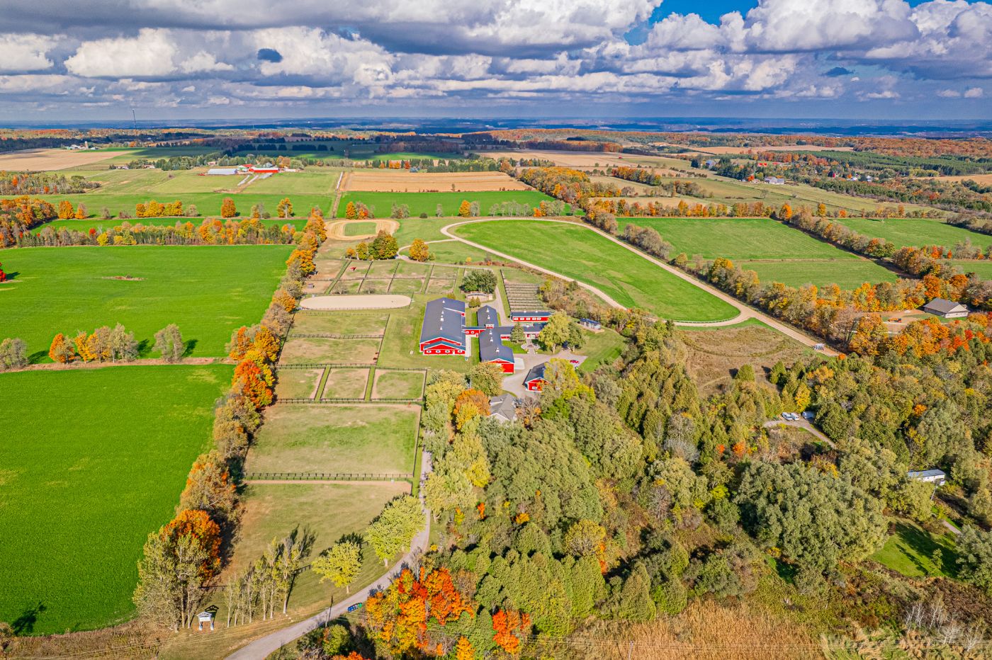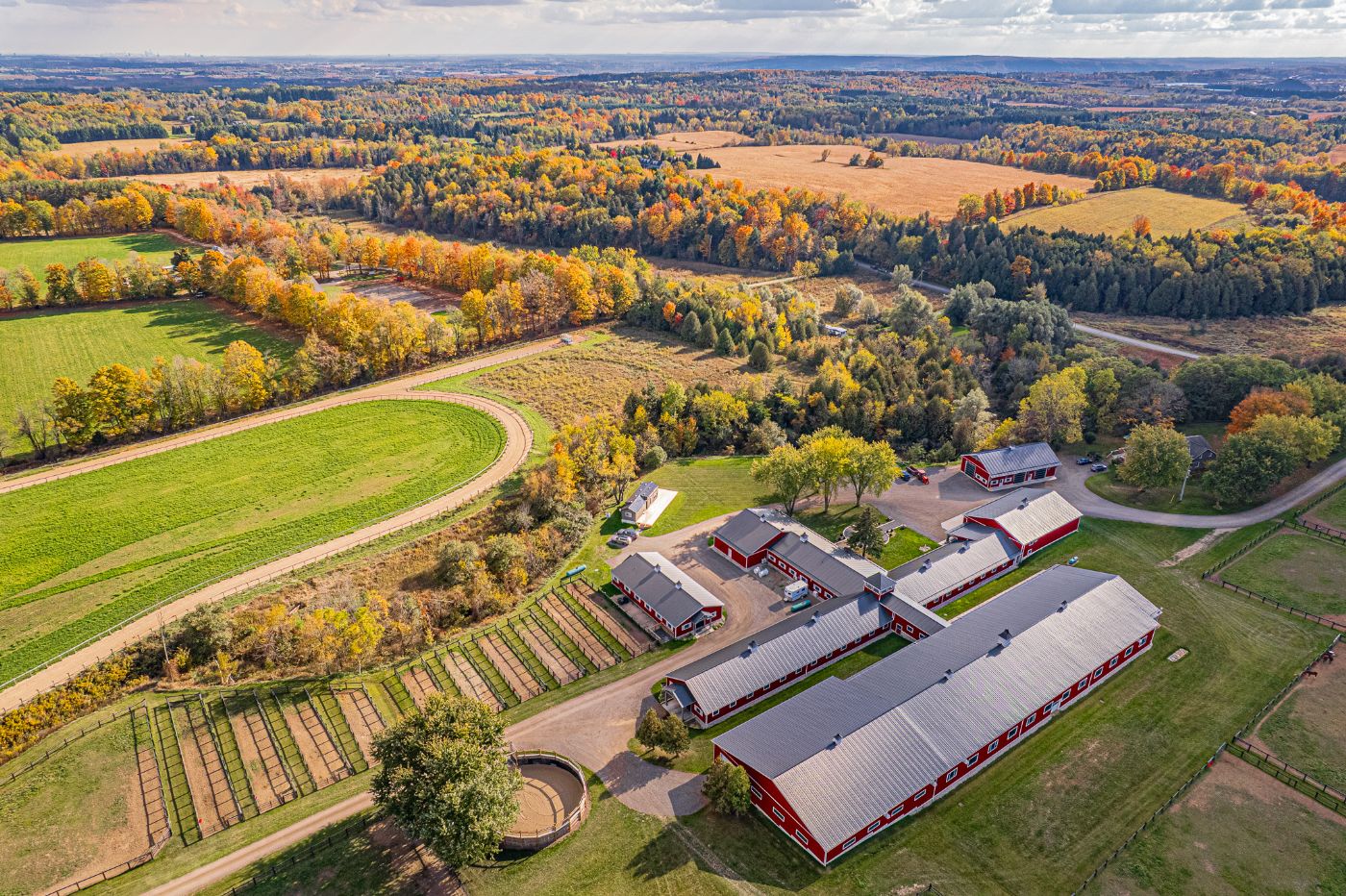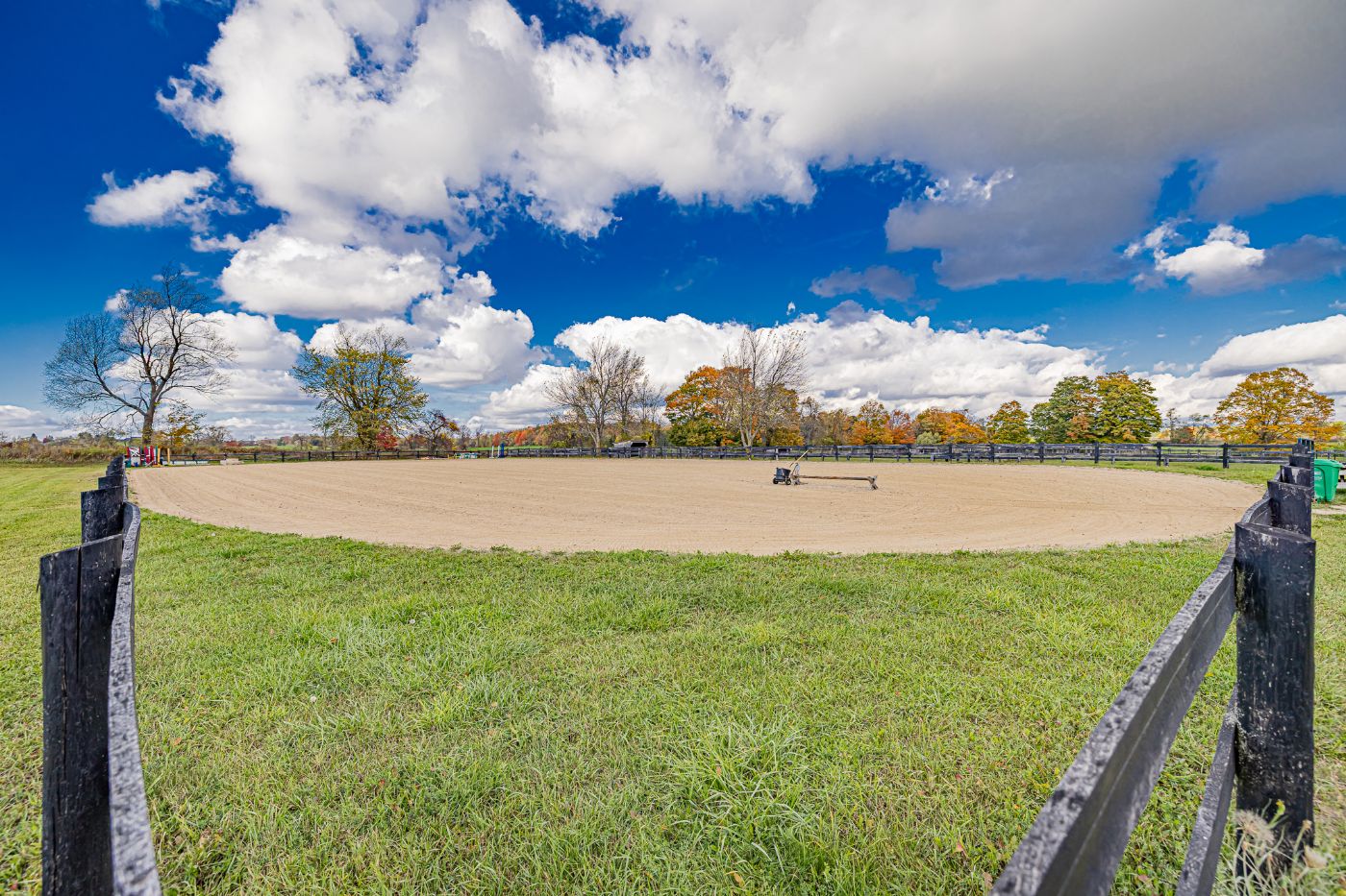 Nestled amid rolling pastures and scenic countryside, this property features a state-of-the-art equestrian complex complete with a 41-stall main barn, dedicated foaling barn, indoor arena, outdoor ring and a private training track.
