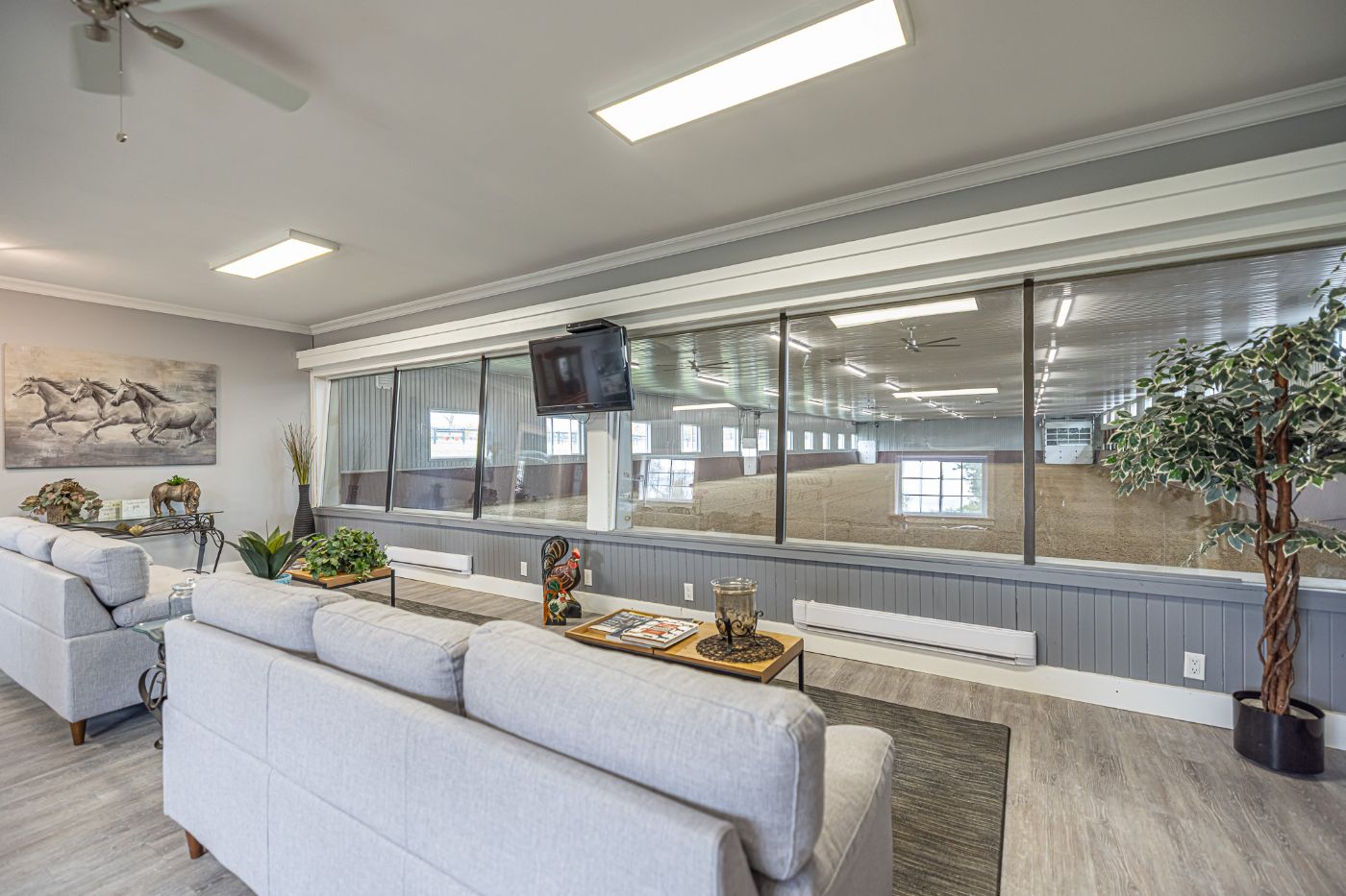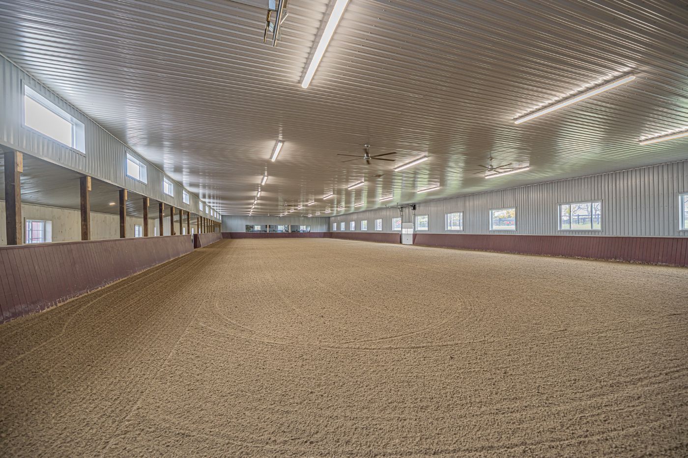 Indoor arena - 100x200 attached to the main barn, large viewing area, kitchen, bathrooms, large office with view of arena.