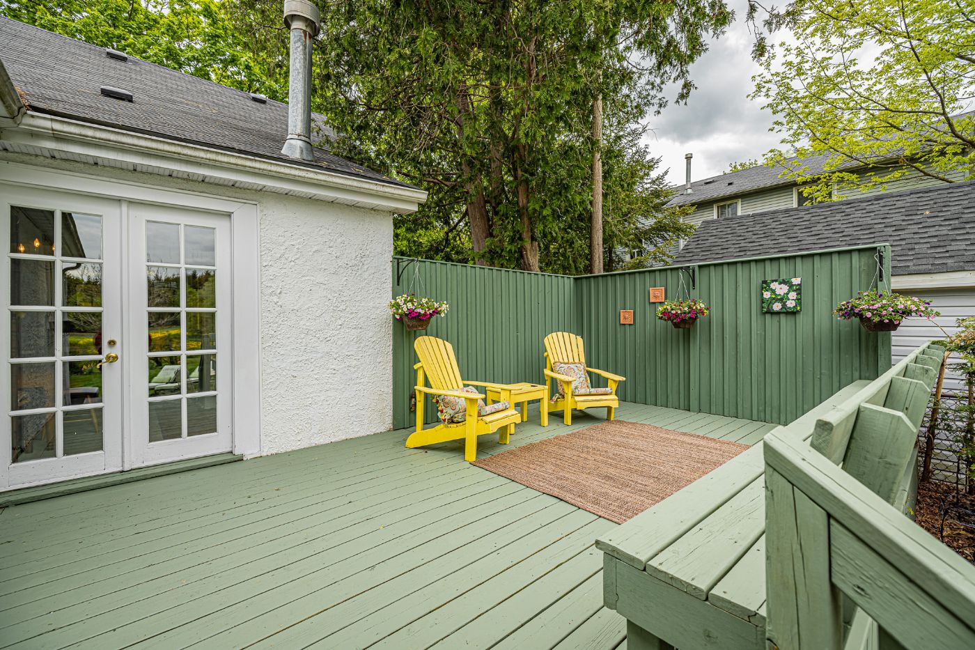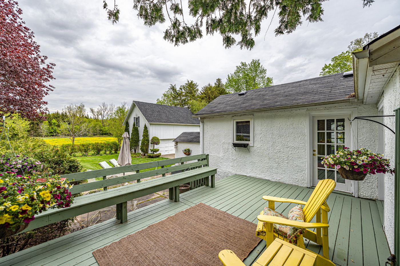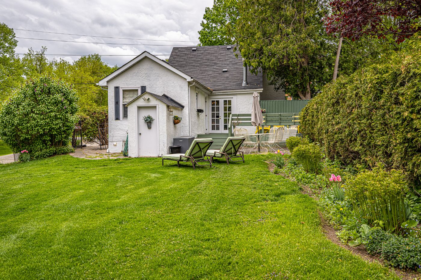 The main residence features two bedrooms, a vintage inspired washroom with a claw foot tub, a separate dining room with French doors leading out to the private deck and stone patio, overlooking the stunning perennial gardens and a bright functional kitchen.