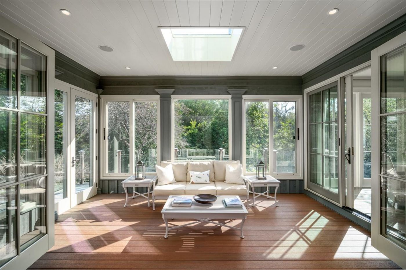 This 3-season room is much enjoyed and provides a direct walk-out to the grounds. One can hear the fountains and garden stream while enjoying the natural views.