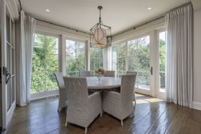 The breakfast room has over-sized windows, wide board floors and its eastern exposure ensures morning light.