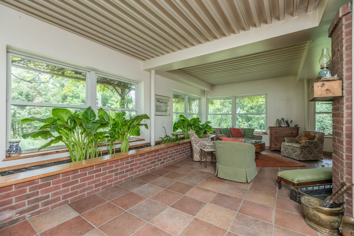 This bright home was oriented to take advantage of all available light. The south and west exposures of the home with large windows were designed to capture solar heat. These custom krypton-filled windows that are heat mirrored (an interior film effectively makes them triple glazed).