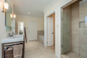 The Main Floor Master Suite is accessed via its own private hallway. The bedroom offers peaceful views, luxurious 4-piece bathroom recently completed and large walk-in closets.