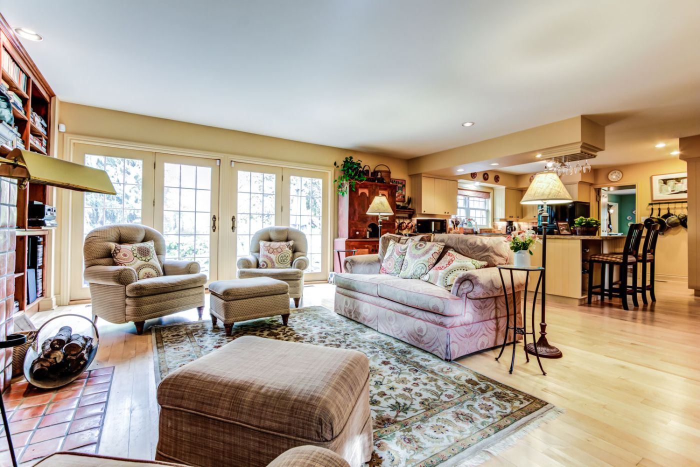 Family Room with Walk-out - Country homes for sale and luxury real estate including horse farms and property in the Caledon and King City areas near Toronto