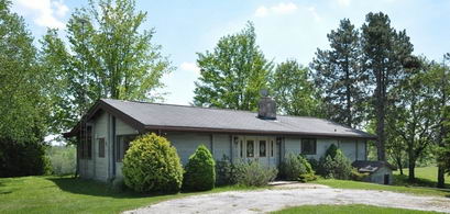 The main residence is a 4-bedroom Panabode home perched on the hilltop looking over the trout pond below. From the Living Room one can enjoy the southern views along with the fieldstone fireplace. The south side of the home has a large deck with countryside views. In the lower level there is a large games room, storage rooms and a large family room.
