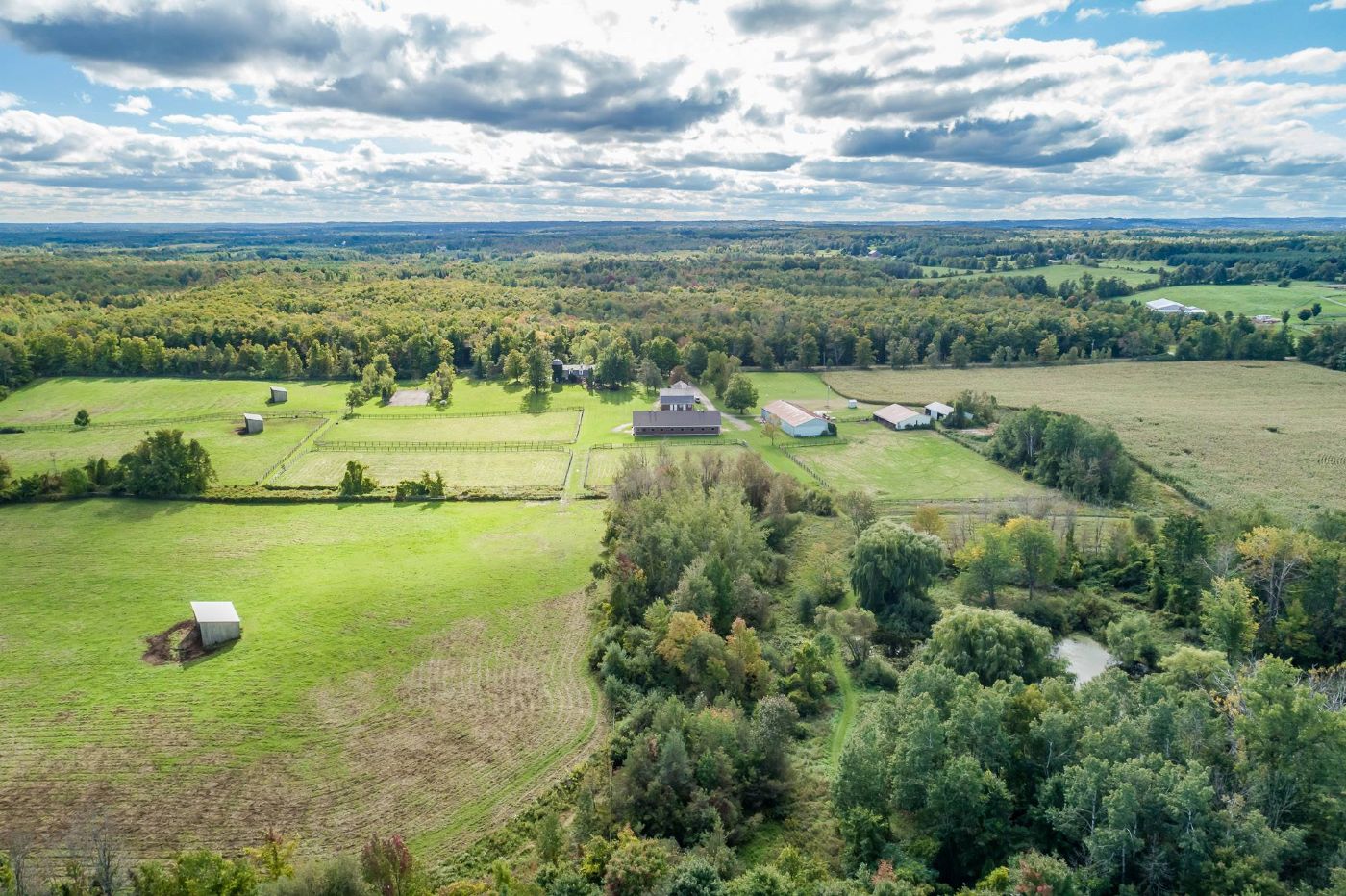 This picturesque farm occupies perhaps the finest location in Caledon in the centre of The Grange Equestrian Neighbourhood. Prime 104 acre parcel of land with a very attractive mix of open rolling fields, woodlands with trails plus a natural pond which attracts large numbers of herons!