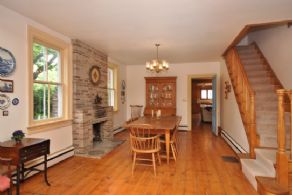 When one enters this century farm house one soon notices the quality of the original finishes including the width of the flooring, the massive beams and the solid wood doors.