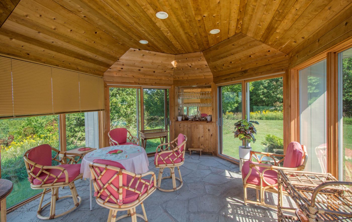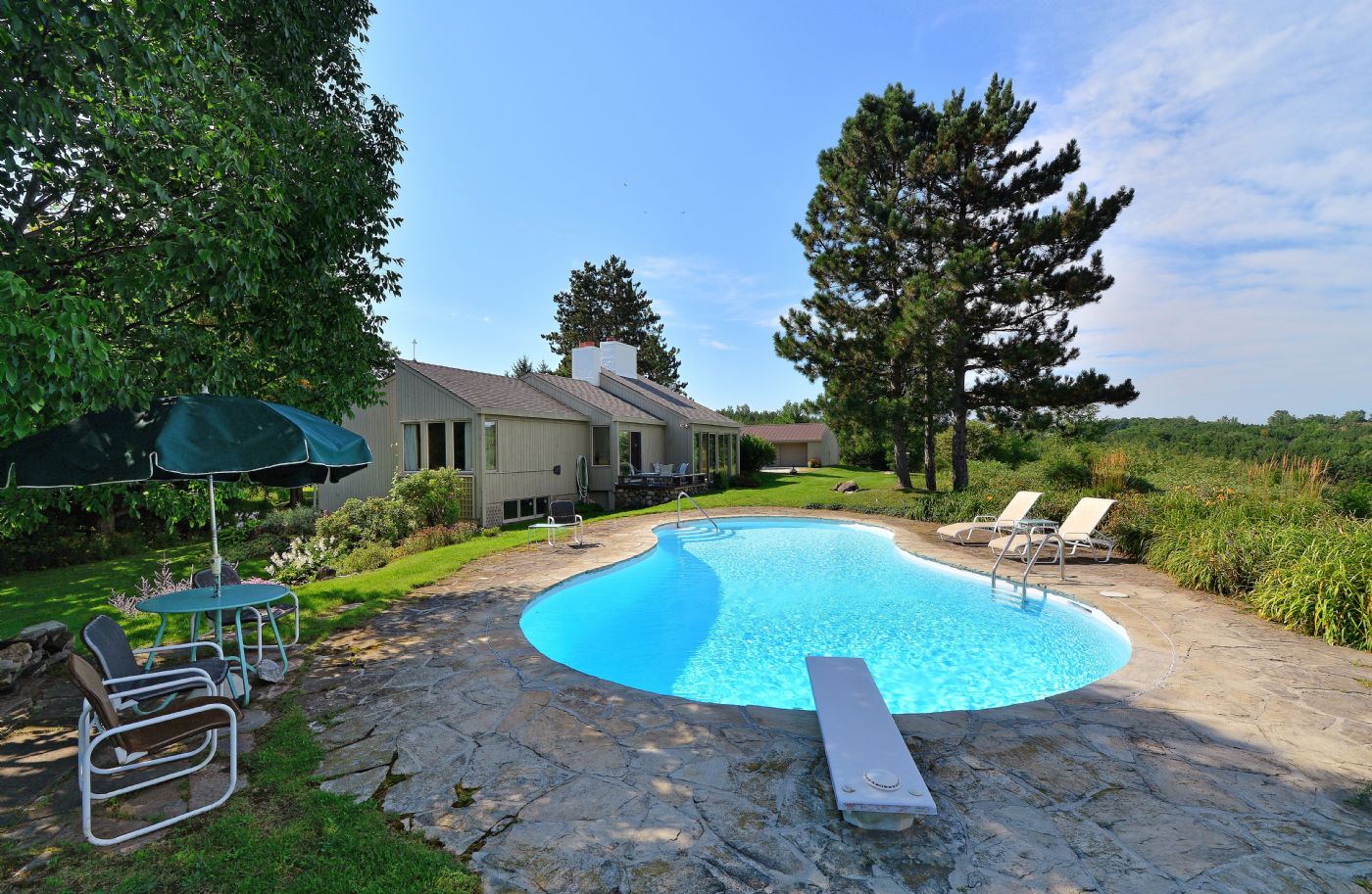 Three bedrooms, three bathrooms, a cedar sauna, multiple walk-outs, a walk in coat room off the generous foyer – Architect Boake’s design is contemporary, focused on the exceptional setting, and has created a country house for easy, comfortable living. Outside, an in-ground concrete pool and a charming gazebo overlook a huge ravine with unobstructed views for miles.