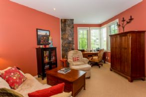 An open staircase in the entrance foyer leads to the second floor 960 sq. ft. Master Suite; spacious sitting room with walk out to balcony/deck, six piece en-suite and master bedroom. A custom 6' round window gives a spectacular view over the Bay.