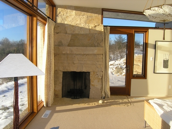 The intricate stonework was designed and crafted by Eric Firth one of the legendary stonemasons of Ontario. The stone floors enjoy warmth from the passive solar design.