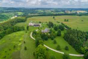 What you have been waiting for! An expansive original stone home (circa 1859) with stunning stone addition recently completed! Private 100 acre setting with distant westerly views over Mono Cliffs Park. Pool. Stone terraces. Long tree-lined drive. Wonderful outbuilding for housing cars, includes guest suite, recreation area and office. A very private country estate within 1 hour 20 mins of Toronto!