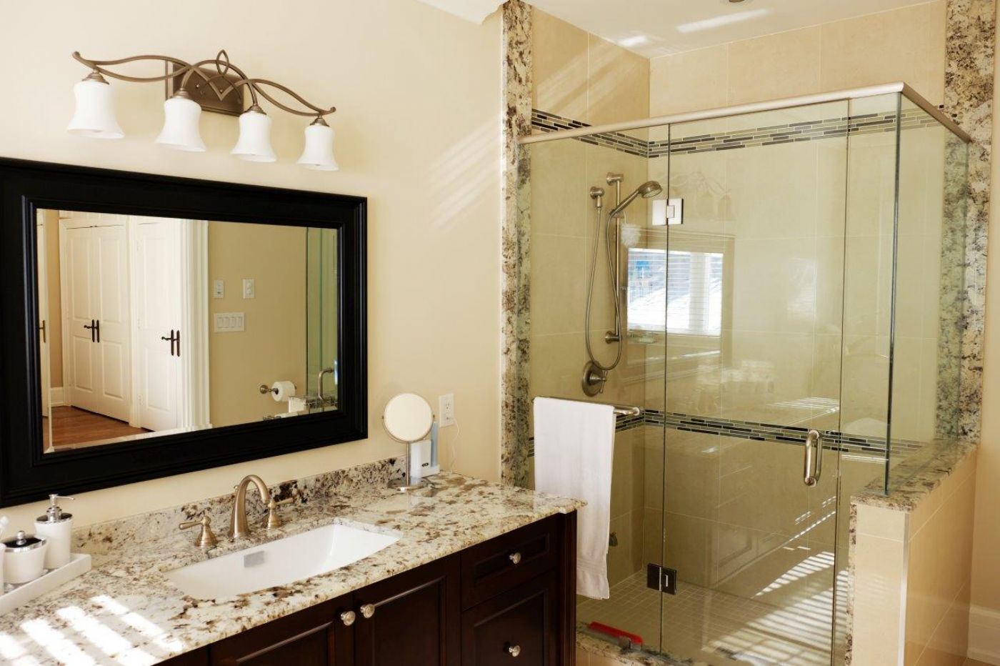 The gardens and the natural stone landscaping have been professionally created and in summer low maintenance perennials bring colour all season long. A 26ft x 26ft workshop has an under-floor dust collection system, natural gas heating, an office and a separate paint storage room. The driveway is no-dust recycled asphalt