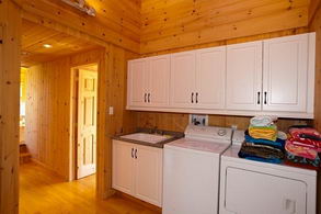 The western pod of the structure houses the master bedroom with 2pc en-suite, 2 additional bedrooms each with sleeping lofts, a 3 pc bath with footed tub and a skylit laundry area.