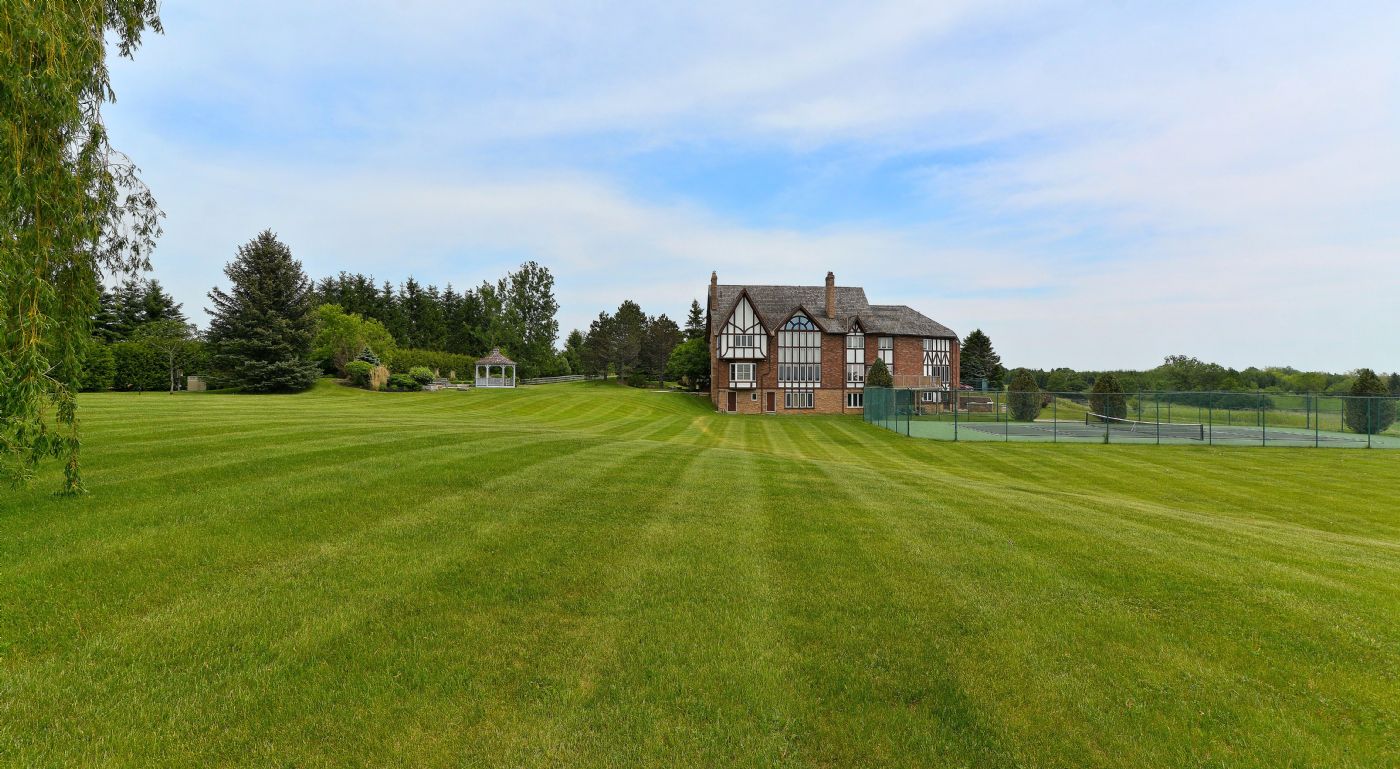 It is hard to imagine better views. The dramatic western views from this property stretch across King Township all the way to the escarpment in Caledon. The house enjoys total privacy on its 34 acre lot with magnificent 30 ft. trees lining the driveway and much of the perimeter of the acreage. Impressive 5+ bedroom Tudor-style home with 3-car garage, tennis court & immaculate stable/workshop building.