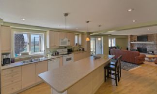 • Large Kitchen with seating area, fireplace, order desk, centre island and massive harvest table. The Kitchen also has a walk-out to the deck and two large pantries.