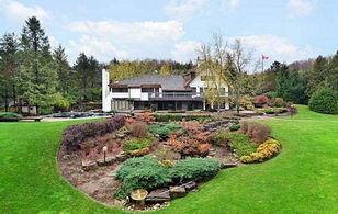 73.5 acres of stunning scenery. Superbly crafted modernist home by Siamak Hariri. A serene setting in the heart of Caledon escarpment country. Stable. Pool. Tennis.